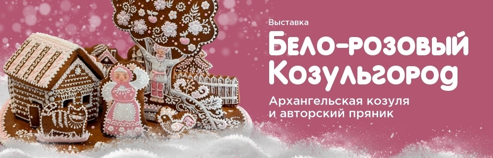 Тема этого года - традиционные архангельские козули, расписанные белой и розовой глазурью – так, как это делали в старину. Владения Деда Мороза, пятикупольный храм, семья самоедов, мельница, русская тройка, поморские промыслы, новогодние гулянья и забавы, знакомые сюжеты из сказок Степана Писахова – всё это можно увидеть в экспозиции выставки «Бело-розовый Козульгород».